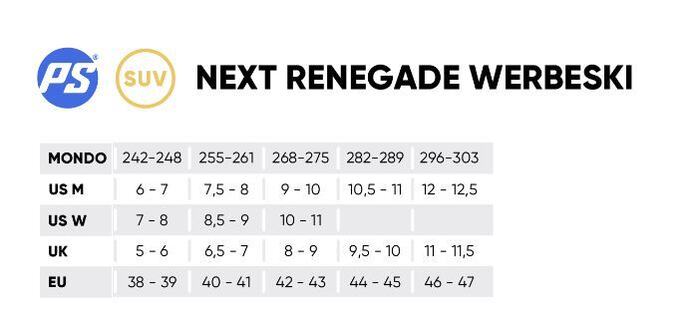 Korčule Powerslide Next Renegade Werbeski Pro 125 SUV sú nielen výkonnostným pracovným koňom, ale aj štýlovou záležitosťou. Vďaka svojmu elegantnému dizajnu, živým akcentom a zmyslu pre detail tieto korčule nepochybne otočia hlavu, kamkoľvek pôjdete. Vyčnievajte z davu a zároveň si užívajte vzrušenie z korčuľovania ako nikdy predtým. Vychutnajte si slobodu pohybu a pustite sa do vzrušujúcich korčuliarskych dobrodružstiev s korčuľami Powerslide Next Renegade Werbeski Pro 125 SUV. Či už ste skúsený profesionál, alebo začiatočník hľadajúci novú výzvu, tieto korčule vám otvoria svet možností. Pozdvihnite svoju korčuliarsku hru ešte dnes a zažite vzrušenie z objavovania prírody ako nikdy predtým.