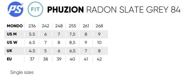Kolieskové korčule Powerslide Phuzion Radon Slate Grey 84 Trinity sú pohodlné a ideálne na intenzívny tréning a rekreačné korčuľovanie na ráme Elite Casted 4x90 mm s 84 mm kolieskami.